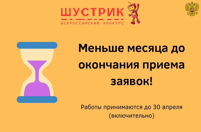 Работы принимаются до 30 апреля (включительно). Самое важное — прикрепить презентацию и видео в соответствующих разделах. Именно их оценивают эксперты. Задания раздела «Обучение» не являются обязательными, презентацию и видео можно прикрепить и без их выполнения. Также напомним о «Помогаторах», кото...